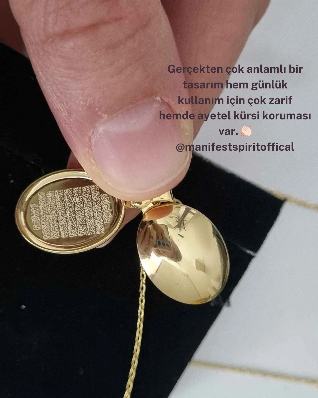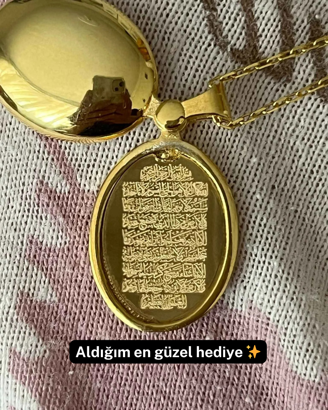 Ayetel Kürsi’nin koruyucu anlamını her an üzerinde taşıyabileceğin özel tasarım bir kolye.